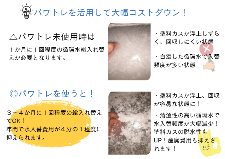 塗装ブースのトラブルになるポンプ、配管の詰まりを軽減いたします。